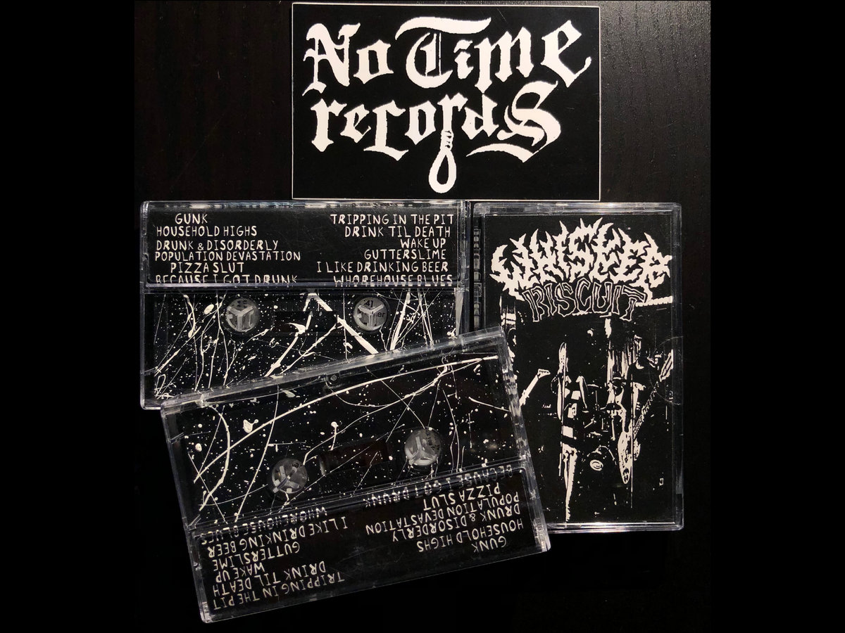 Whisker Biscuit Black with White Splatter Cassette from our pals at No Time Records.